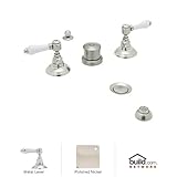 Rohl A1460LM Country Bath Widespread Bidet Faucet with Metal Lever Handles, Polished NickelCountry Bath Widespread Bidet Faucet with Metal Lever Handles The Rohl Country Bath collection matches a relaxed country lifestyle with refined Italian elegance. Inspired by the scenic regions of northern Italy, the Rohl Country Bath collection is also crafted there. This collection is the ideal combination of form and function. Look for a number of different variations within the Rohl Country Bath collection, with popular families like Verona, Alessandria, Hex, and Viaggio. Give your kitchen and bathroom an amazingly stylish update and upgrade with Rohl's Country Bath collection. Rohl A1460LM Features: All brass faucet body construction - weight: 6 lbs. Hand-machined from solid brass stock Industry leading, 1/4 turn lifetime ceramic disc valve Superior finishing process - chemical, scratch, and stain resistant Number of installation holes required: 5 Metal lever handles included Diverter and vacuum breaker included Extra secure mounting assembly All necessary mounting hardware included Fully covered under Rohl's limited lifetime warranty Manufactured in New Zealand, Western Europe, and/or North AmericaVariations: A1460LM - This model A1460LH - Same model with hex metal lever handles A1460LC - Same model with Swarovski crystal lever handles A1460LP - Same model with porcelain lever handles A1460XC - Same model with Swarovski crystal cross handles A1460XM - Same model with metal cross handlesAbout Rohl: Excellence, durability, and beauty. Family values, integrity, and innovation. These are all terms which aptly describe Rohl and its remarkable selection of kitchen and bathroom faucets and fixtures. Since 1983, Rohl has maintained a commitment to providing high-quality plumbing products for residential and commercial applications, while assuring these fixtures would make a difference in the overall décor in the living space