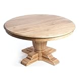 Vineyard Farm House Trestle Base 60" Round Dining Table with LeavesRecycled elm takes center stage in this rustic country table, which features intricate details like a ribbed, threaded base and nail head-edged surface. With two additional leaves, the surface expands to accommodate guests and invites entertaining.