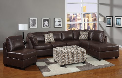Bonded leather Sectional sofa in Coffee brown Finish with Free accent Pillows