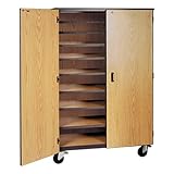 | ✚✚✚ Ironwood Manufacturing Nine-Shelf Storage Cabinet w/ Doors - Standard Frame Ironwood's Nine-Shelf Storage Cabinet holds 36 large, 27 medium or 45 small tote trays that help you keep supplies organized. Optional plastic trays have slots for labels, so each employee can have his or her own spot for belongings. Steel frames on the top and bottom provide support, and PVC edges and a laminate finish protect the particleboard core. Holds up to 300 pounds of evenly distributed weight and comes in two neutral colors. Lockable doors secure valuables.