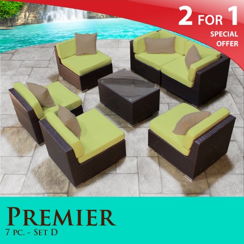 Premier Outdoor Wicker 7 Piece Patio Set Peridot Covers -07D