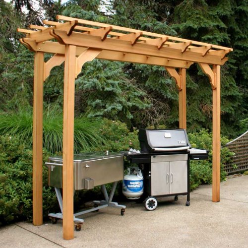 Creekvine Designs New Dawn 3 x 10 ft. Cedar PergolaSee your deck or patio in a new light with the Creekvine Designs New Dawn 3 x 10 ft. Cedar Pergola. Whether the posts and top are used to train lush climbing greenery or left bare for the architectural beauty of the piece, this pergola will help you enjoy your yard, deck, or patio by cutting harsh summer sunlight. It's an ideal fit over an outdoor bar, barbeque, lounge chairs, or any area you'd like to both shade and highlight. The structural elegance of this piece is sure to add charm to any outdoor setting. The western red cedar used in this piece is an ideal wood for outdoor construction because of its tight, straight grain without many knots as well as its high natural resistance to decay, so this outdoor feature will be sure to hold up wonderfully season after season. This pergola comes unstained so that you can either leave its naturally rich cedar color and texture or choose the precise shade to match your other exterior decor. Additional features: