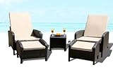 Outdoor Wicker Patio Pool Lounge All Weather 3 Pc Resin Wicker Chair Recliner Set