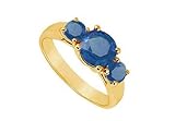 Three Stone Sapphire Ring : 14K Yellow Gold - 0.75 CT TGW Size 9