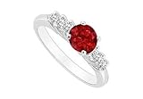 Ruby and Diamond Engagement Ring : 14K White Gold - 0.50 CT TGW Size 13
